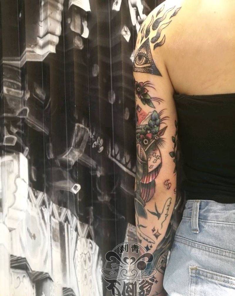 当前位置: 首页 >云南省大理白族自治州纹身店-不倒翁刺青穿孔(大理店)纹身图案>修改添加old school纹身图片_手臂欧美成品纹身图案