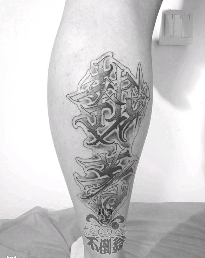 执着纹身图片_花体字纹身图案