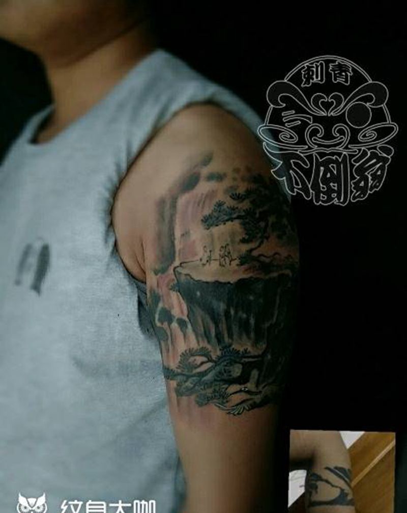 当前位置: 首页 >云南省大理白族自治州纹身店-不倒翁刺青穿孔(大理店)纹身图案>水墨山水遮盖纹身图片_水墨纹身图案