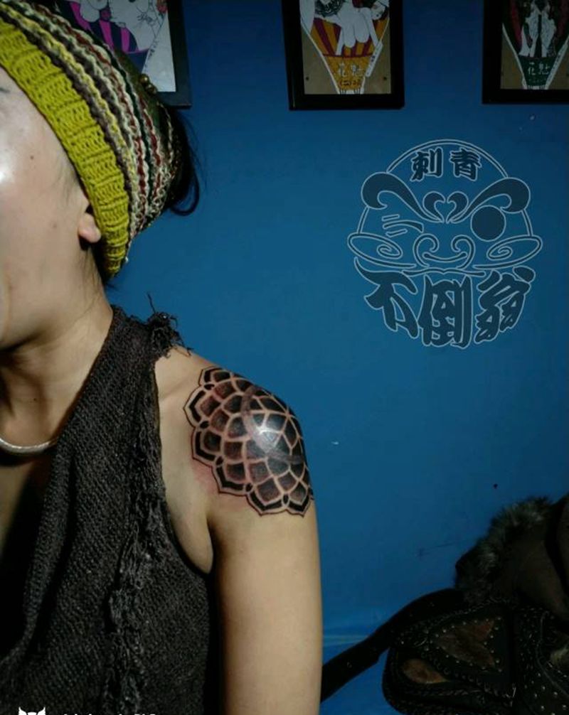 • 纹身吧推荐的披肩图腾半胛纹身图案作品展示
