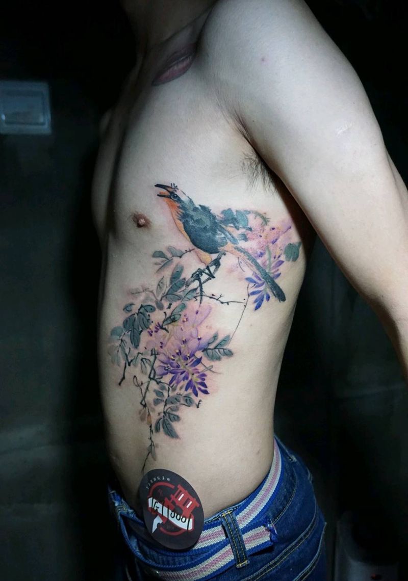 • 女性大花胸纹身_43张霸气漂亮的女性大花胸纹身图案作品