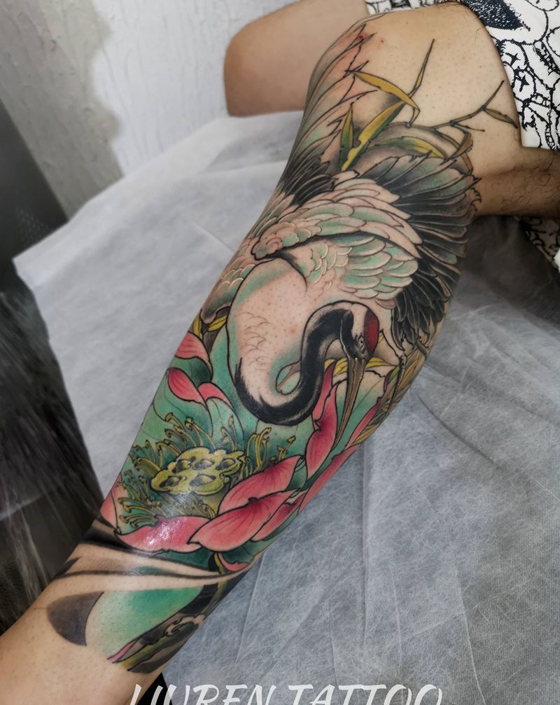 当前位置: 首页 >云南省大理白族自治州纹身店-流刃刺青纹身图案>仙鹤纹身图片_腿部新传统纹身图案