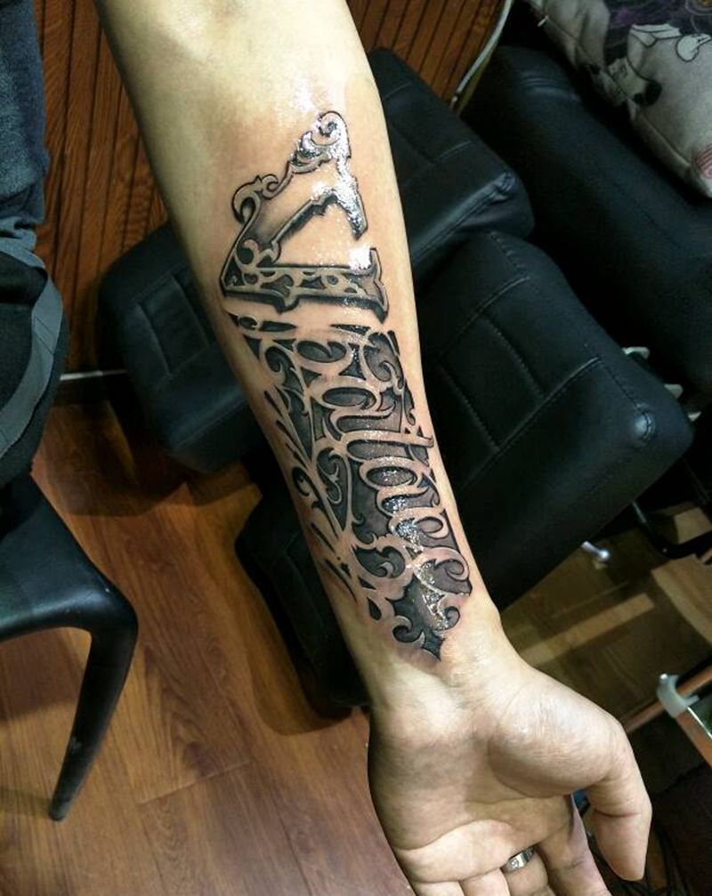 当前位置: 首页 >云南省大理白族自治州纹身店-流刃刺青纹身图案>奇卡诺纹身图片_手臂欧美写实字符成品纹身图案