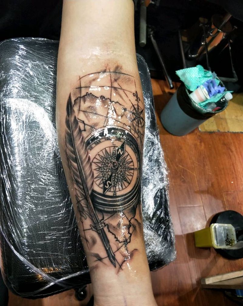 当前位置: 首页 >云南省大理白族自治州纹身店-流刃刺青纹身图案>指南针纹身图片_手臂欧美写实几何成品纹身图案