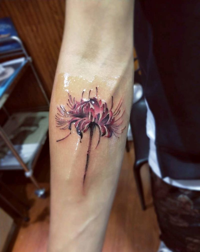 彼岸花纹身图片_手臂传统清新植物成品纹身图案