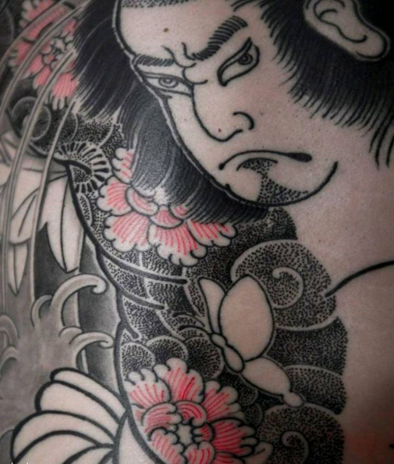 黑灰满背纹身图案