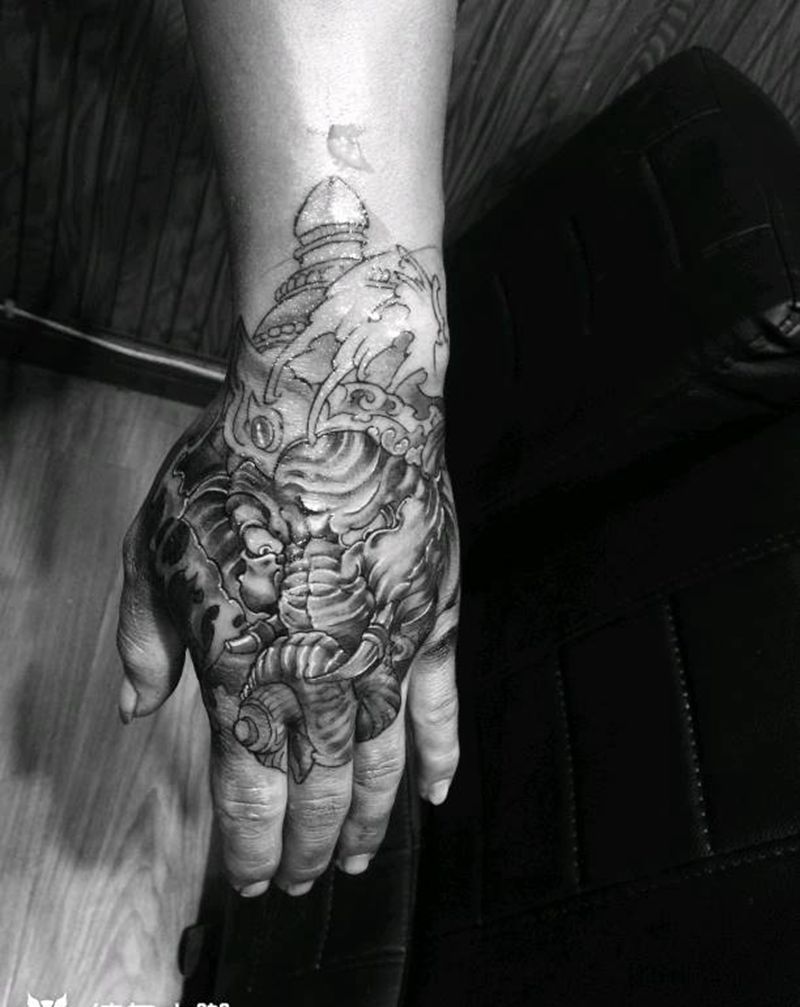 象神纹身图片_手部传统鬼神成品纹身图案