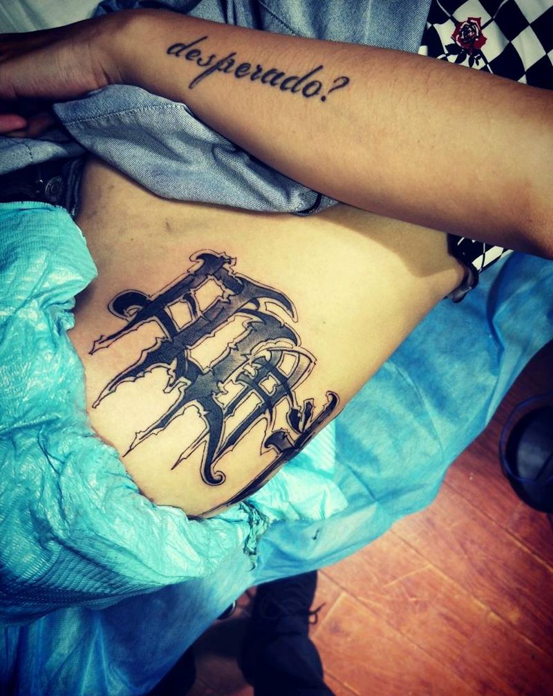 • T关于私处得爱!纹身图片_成品腹部清新字符图腾纹身图案