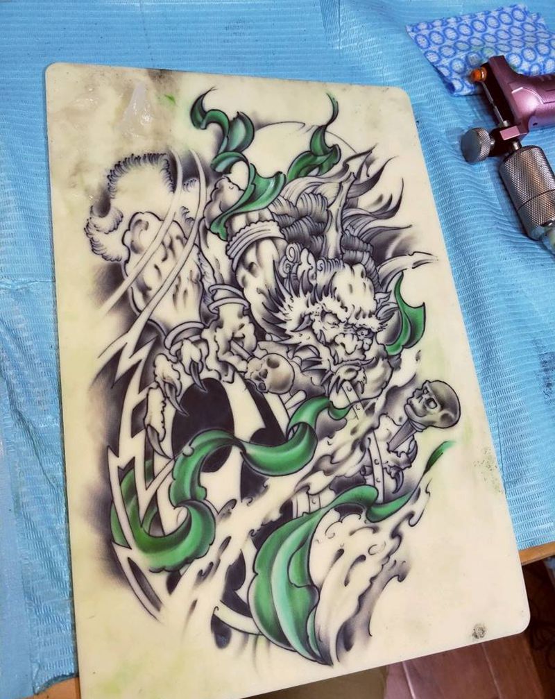 当前位置: 首页 >云南省大理白族自治州纹身店-流刃刺青纹身图案>店内驻店师傅练习皮作品纹身图片_成品纹身图案