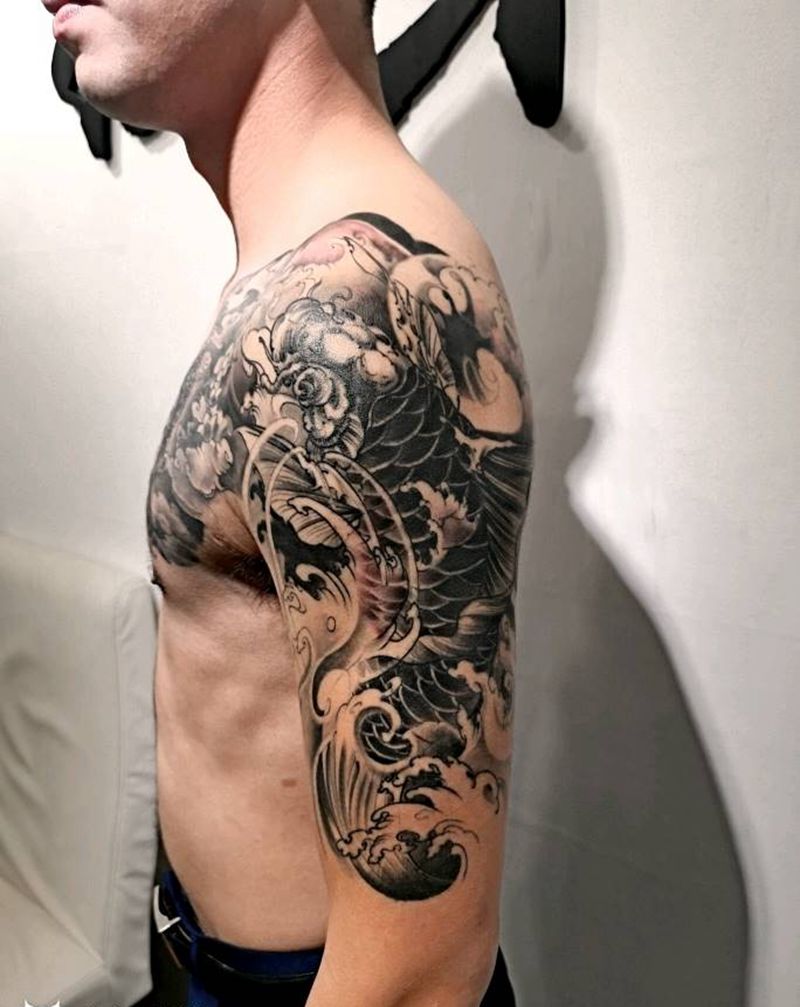 一念 半甲纹身图片_胸部肩部新传统纹身图案