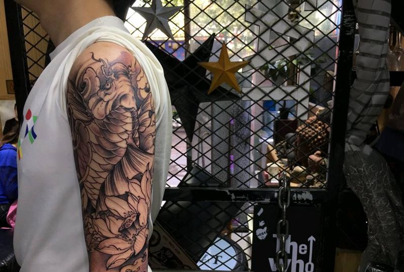 当前位置: 首页 >云南省大理白族自治州纹身店-流刃刺青纹身图案>锦鲤纹身图片_手臂新传统纹身图案