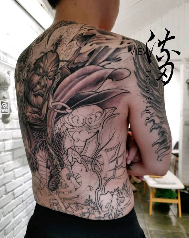 天王御龙纹身图片_背部新传统纹身图案
