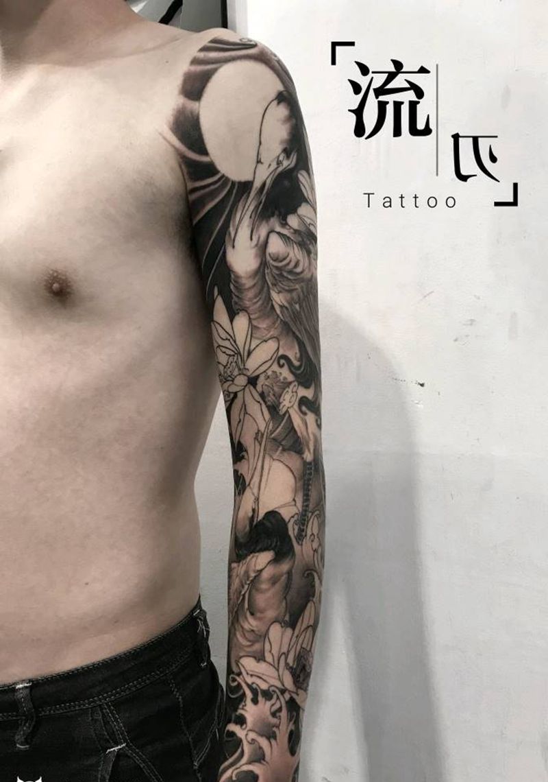 当前位置: 首页 >云南省大理白族自治州纹身店-流刃刺青纹身图案>鹤纹身图片_手臂新传统纹身图案