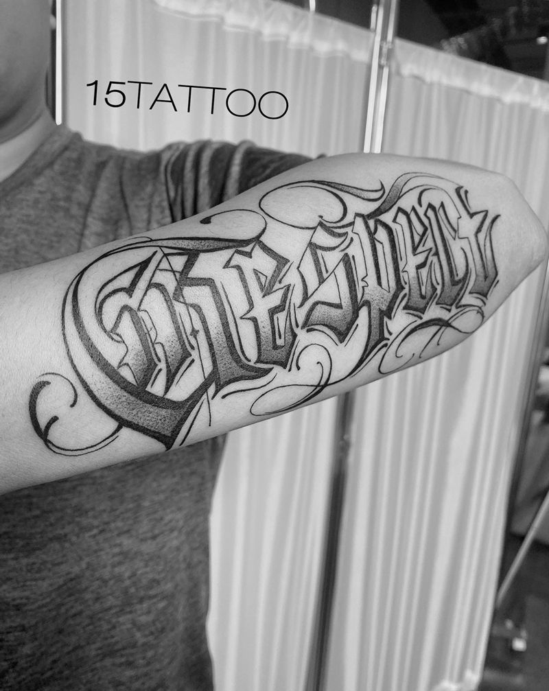 花体字纹身图片_手臂花体字纹身图案