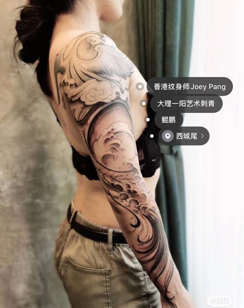 当前位置: 首页 >云南省大理白族自治州纹身店-一阳艺术刺青纹身图案>鲲鹏神话故事纹身图片_手部手臂水墨水彩纹身图案