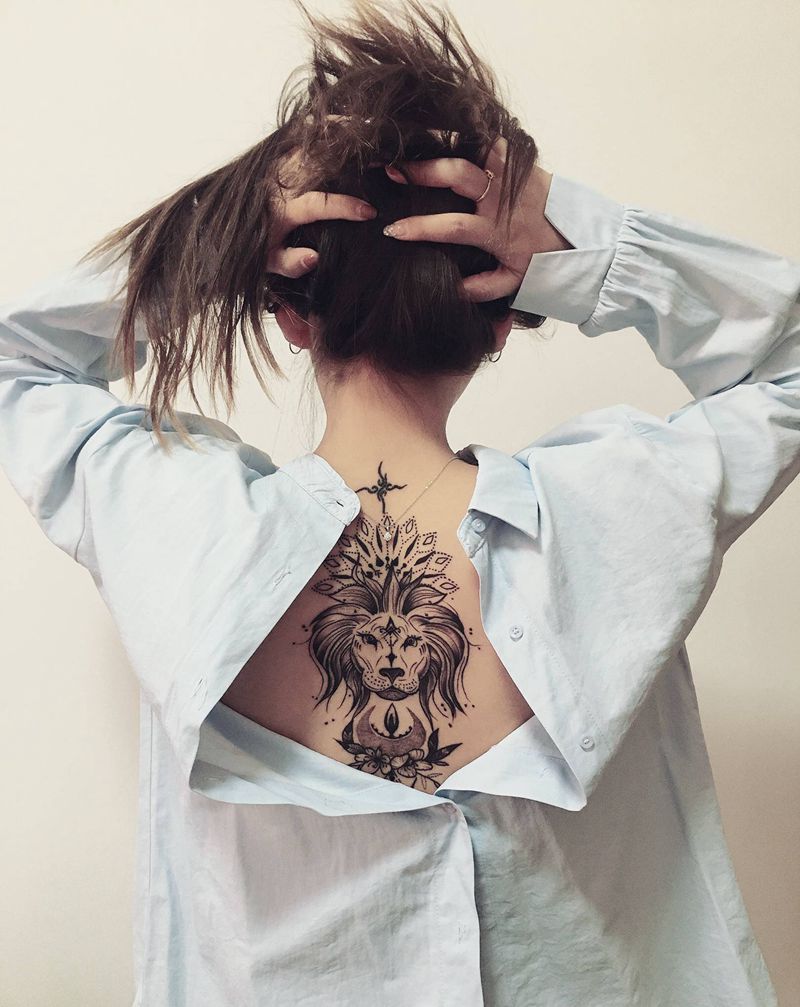 狮子纹身图片_背部纹身图案