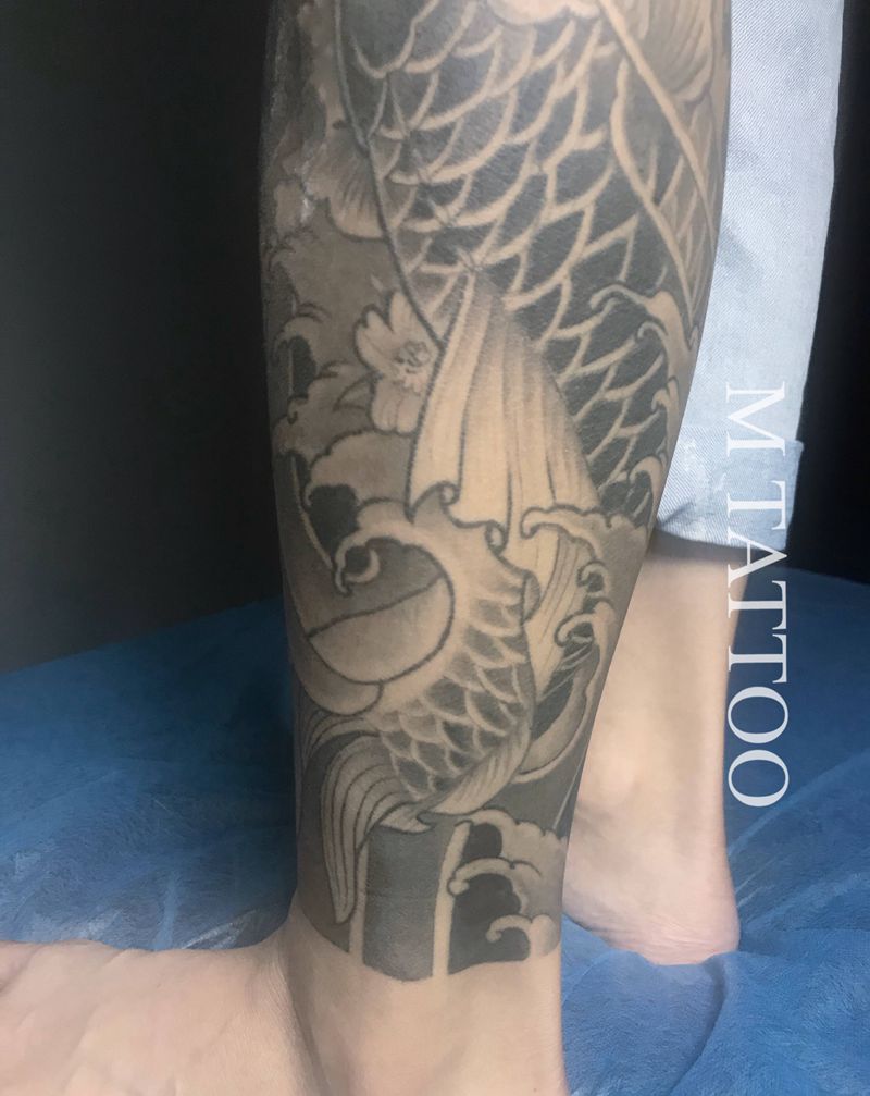 当前位置: 首页 >云南省大理白族自治州纹身店-铭刺青纹身图案>包小腿鲤鱼纹身图片_腿部老传统新传统鲤鱼大理纹身图案