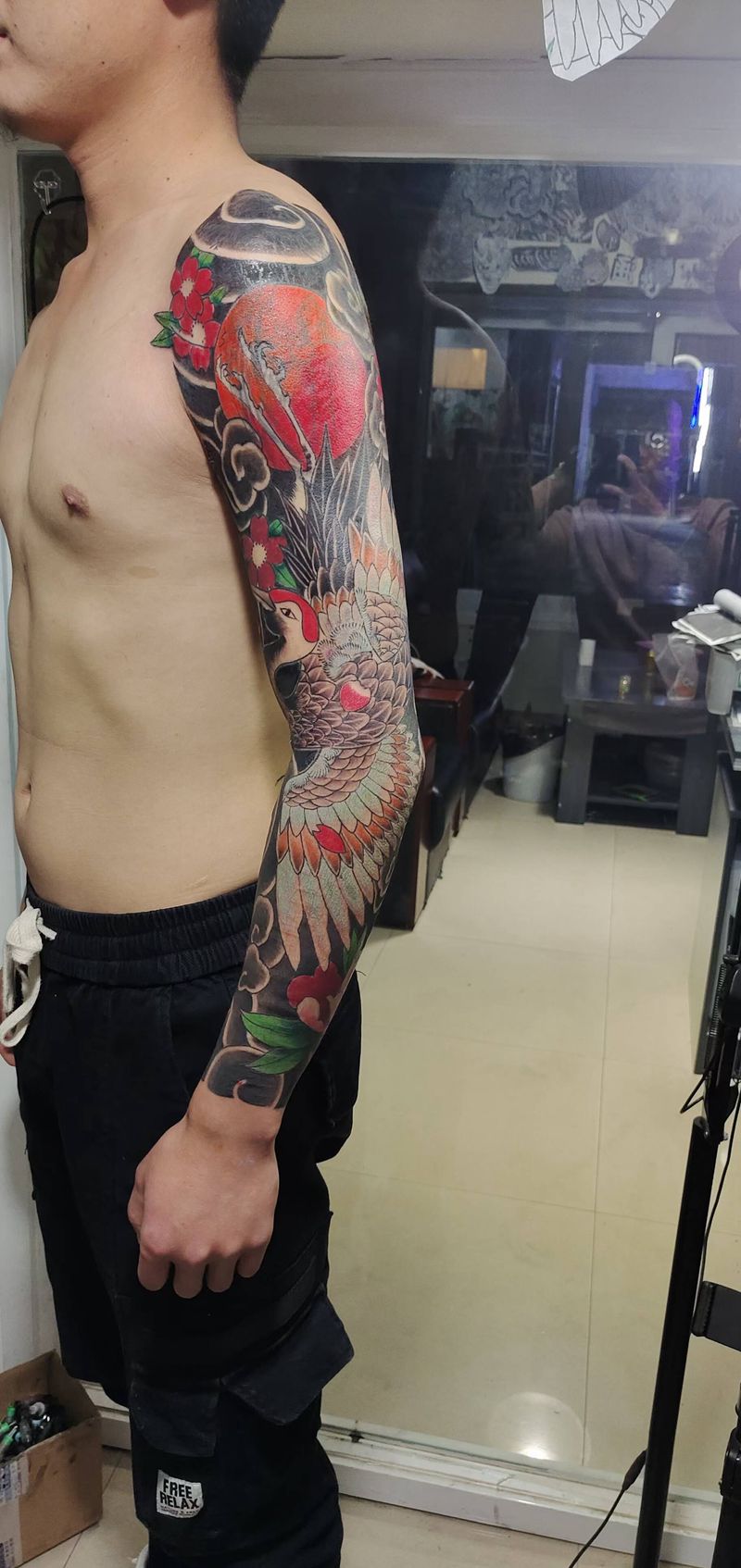 当前位置: 首页 >云南省大理白族自治州纹身店-墨涅刺青纹身图案>仙鹤纹身图片_手臂老传统仙鹤纹身图案