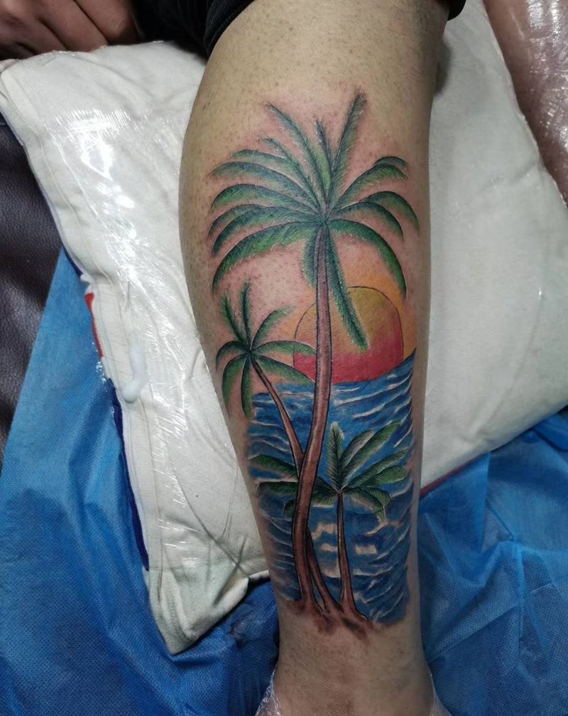 椰子树纹身图片_手部New SchoolOld School纹身图案