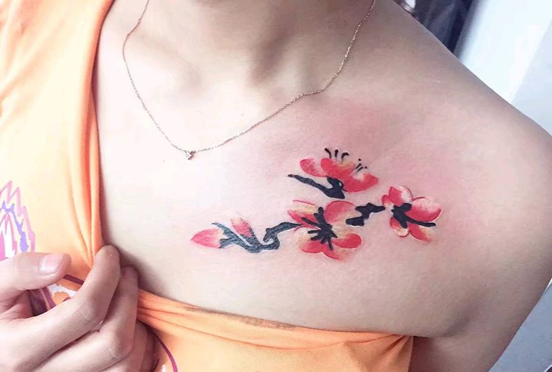• 女性大花胸纹身_43张霸气漂亮的女性大花胸纹身图案作品