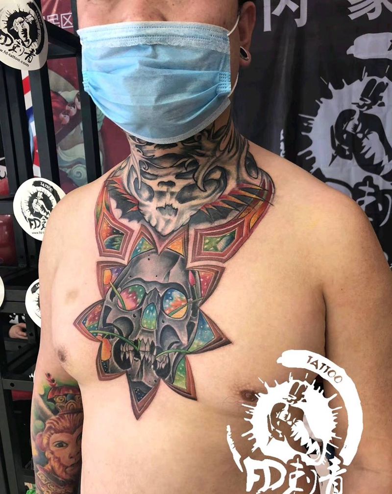 • 男性大花胸_42张优秀的男性大花胸纹身图案图片