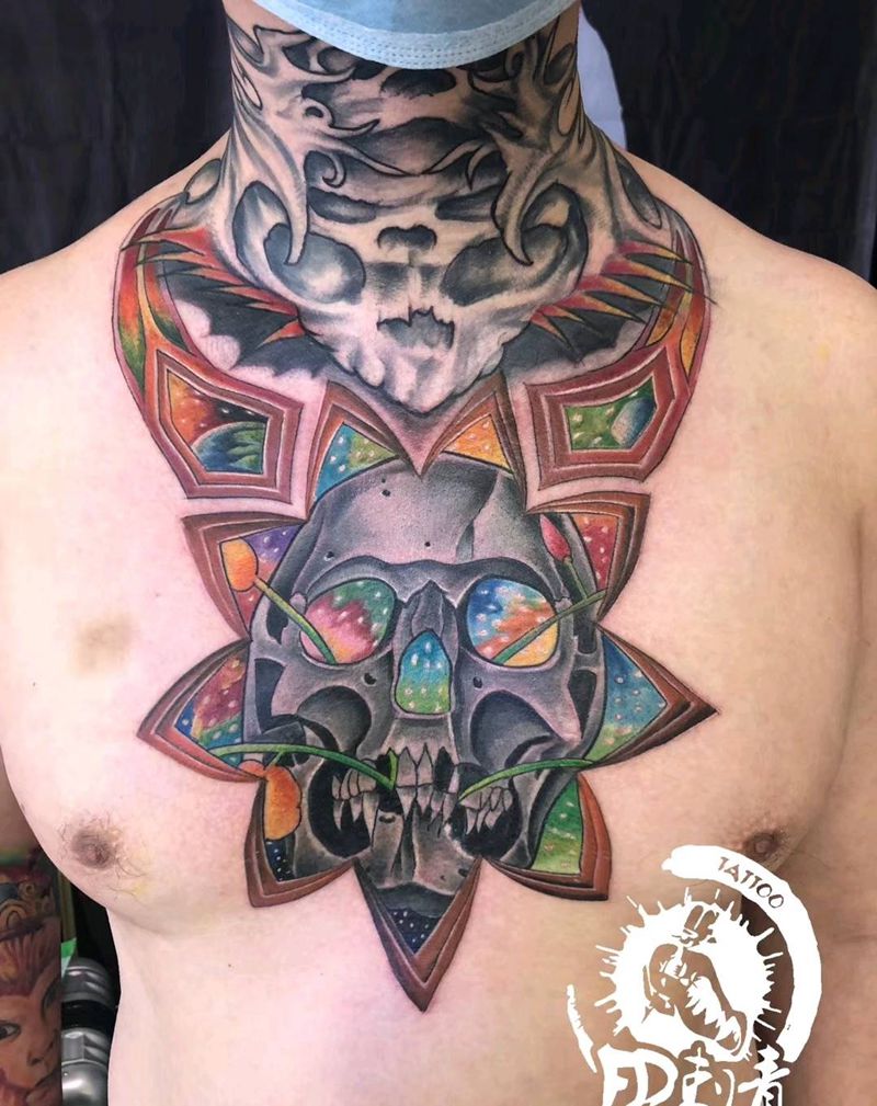 • 男性大花胸_42张优秀的男性大花胸纹身图案图片