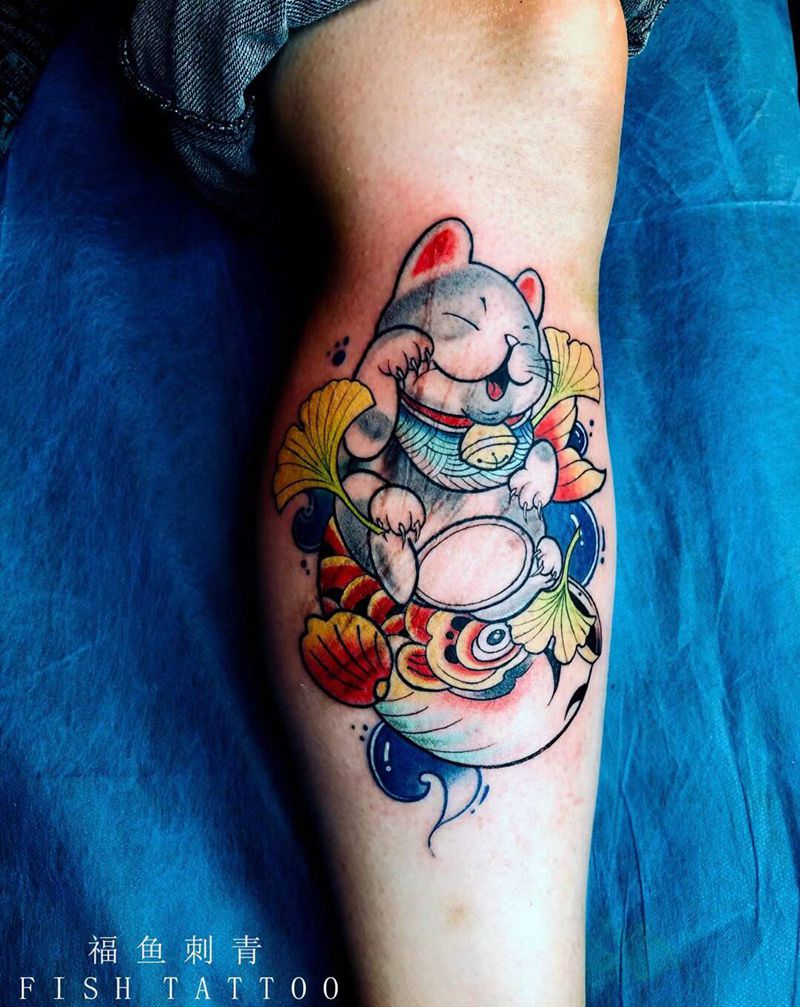 • T招财猫纹身图片
