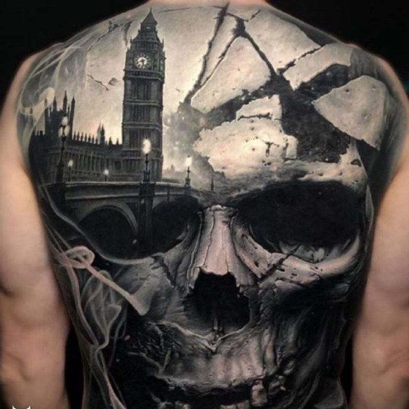 黑灰满背纹身图案