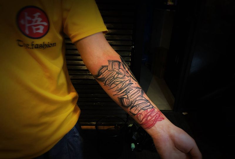 当前位置: 首页 >陕西省西安市纹身店-十度刺青纹身图案>Ssymfgzt wx纹身图片_手臂花体字纹身图案
