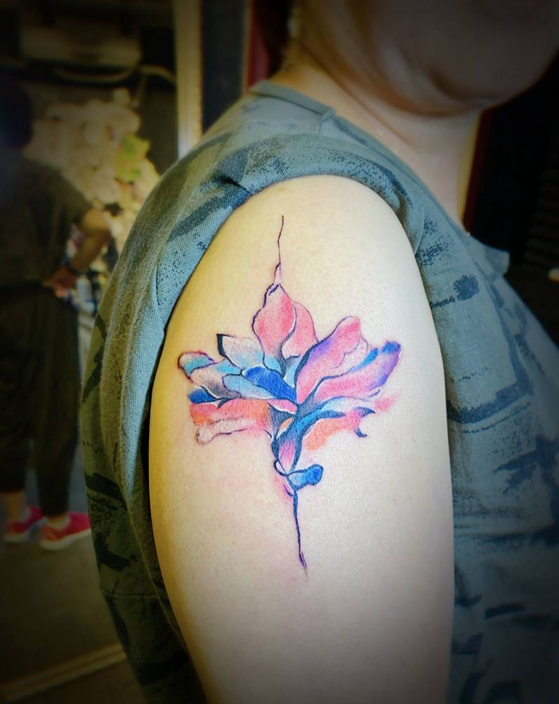 水彩花纹身图片_手臂水彩纹身图案