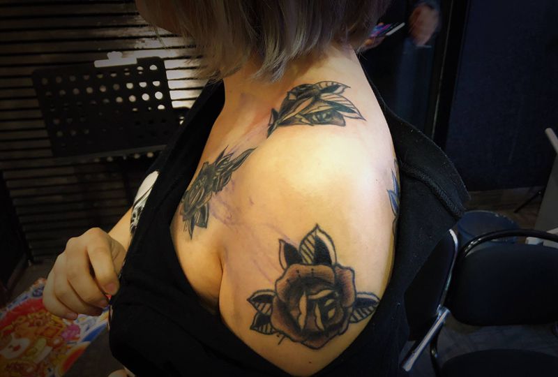 • 女性大花胸纹身_43张霸气漂亮的女性大花胸纹身图案作品