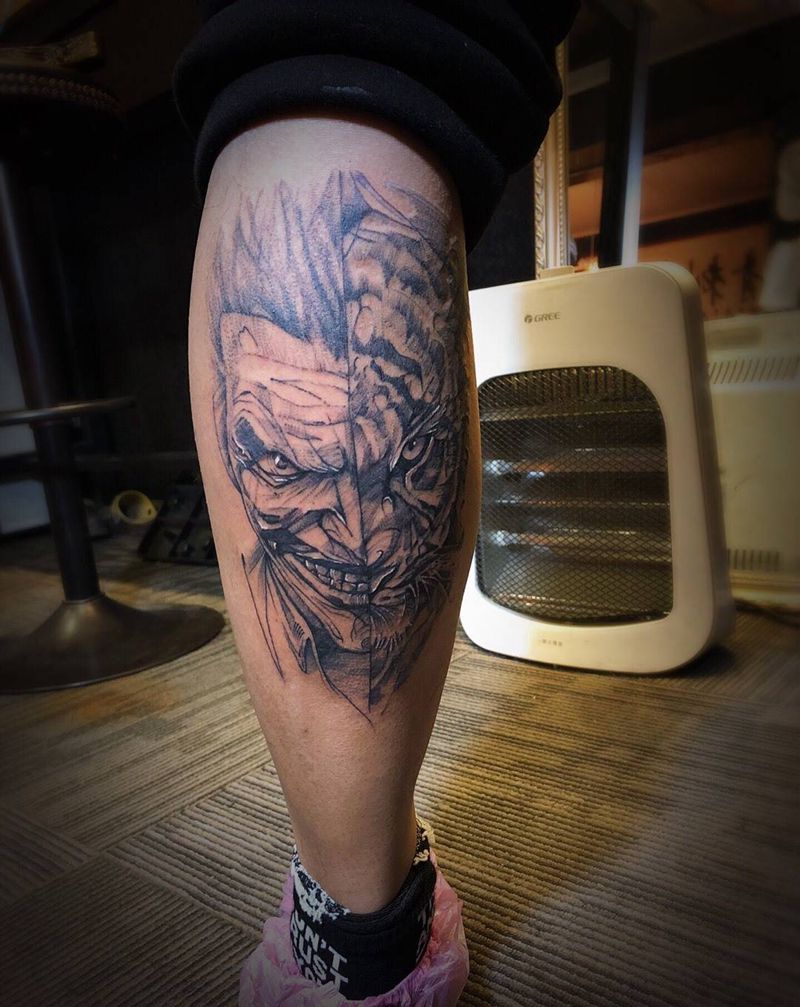 • T包小腿吹火男+阿多福纹身图片_腿部老传统新传统吹火男阿