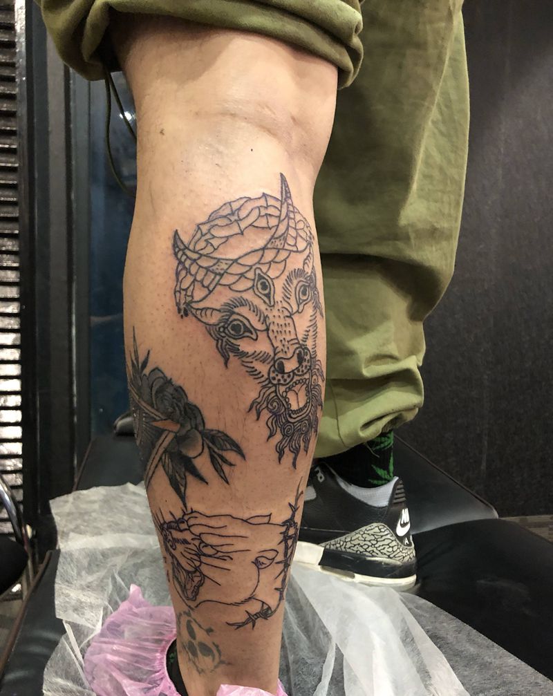 当前位置: 首页 >陕西省西安市纹身店-十度刺青纹身图案>又拼一小腿纹身图片_Old School纹身图案