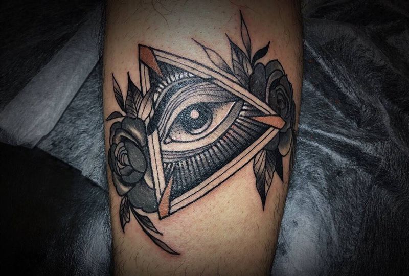 上帝之眼纹身图片_腿部Old School纹身图案