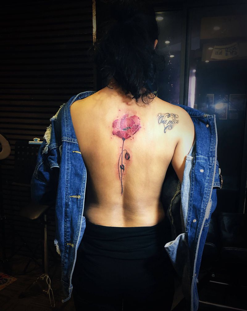 当前位置: 首页 >陕西省西安市纹身店-十度刺青纹身图案>罂粟纹身图片_背部水彩纹身图案