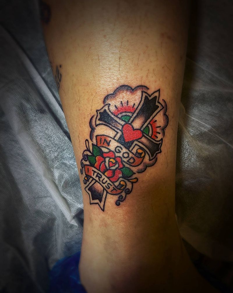 当前位置: 首页 >陕西省西安市纹身店-十度刺青纹身图案>十字架纹身图片_腿部Old School纹身图案