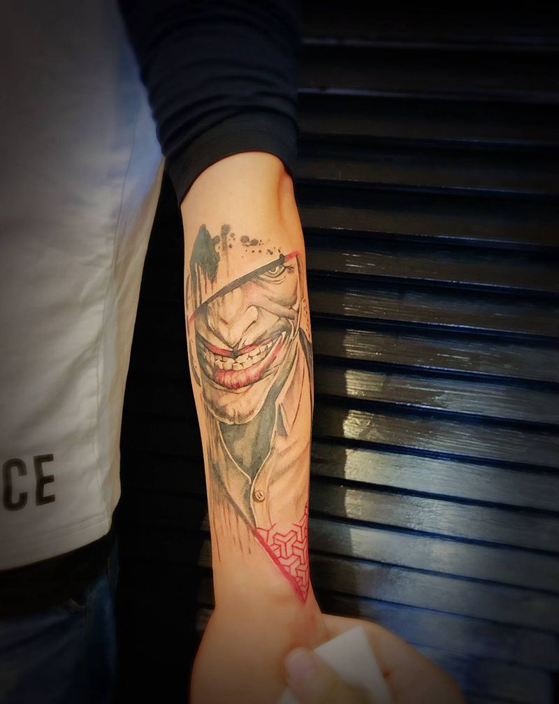 当前位置: 首页 >陕西省西安市纹身店-十度刺青纹身图案>小丑纹身图片_手臂纹身图案