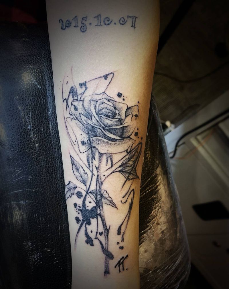 黑灰玫瑰纹身图片_手臂水墨纹身图案