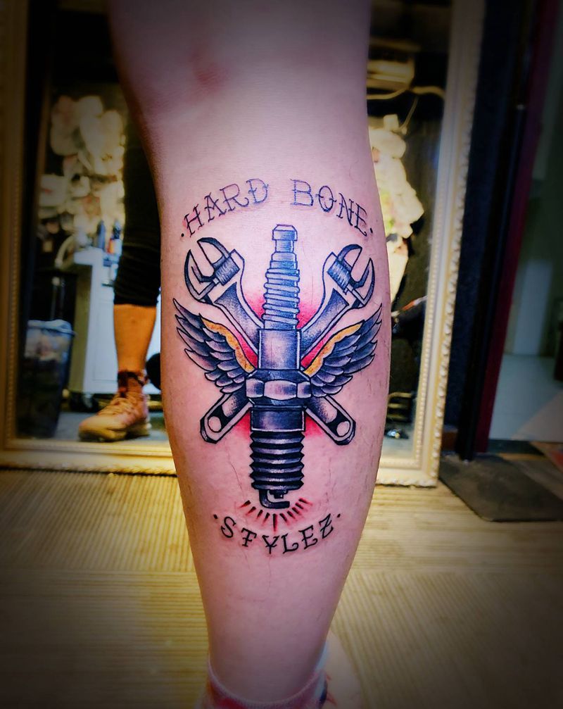 火花塞纹身图片_腿部Old School纹身图案