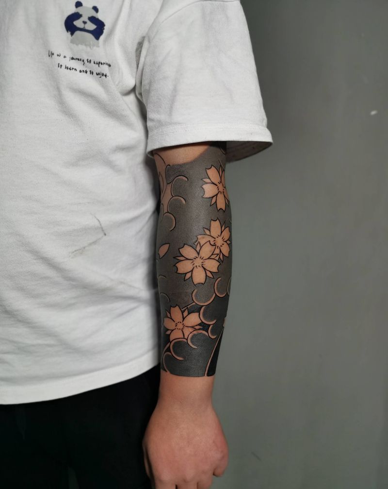 当前位置: 首页 >云南省大理白族自治州纹身店-针锋刺客刺青纹身图案>传统 樱花纹身图片_手臂手部老传统纹身图案