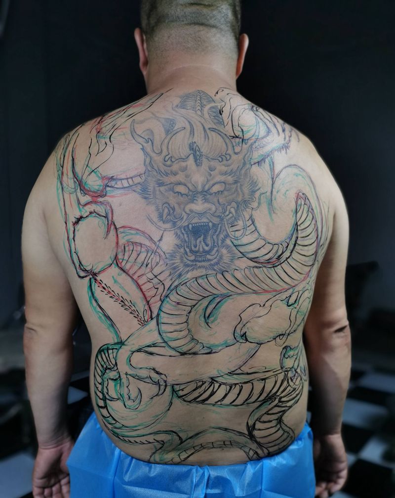 当前位置: 首页 >云南省大理白族自治州纹身店-针锋刺客刺青纹身图案>满背龙纹身图片_背部老传统新传统纹身图案
