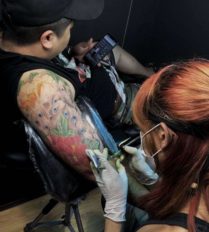 当前位置: 首页 >四川省成都市纹身店-青-刺青工作室纹身图案>孔雀花臂纹身图片_手臂新传统孔雀牡丹纹身图案