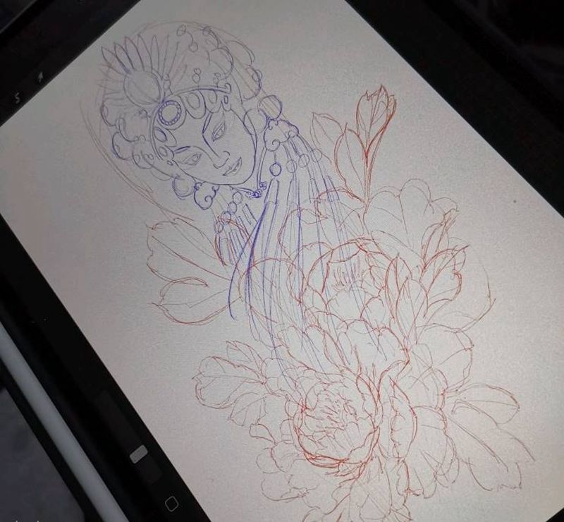 当前位置: 首页 >四川省成都市纹身店-青-刺青工作室纹身图案>花旦花臂稿纹身图片_手臂新传统花旦牡丹纹身图案