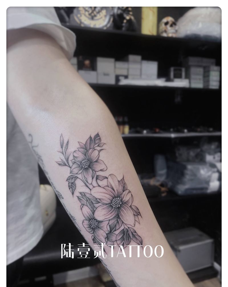 当前位置: 首页 >陕西省西安市纹身店-陆壹贰刺青纹身图案>素花纹身图片_手臂纹身图案