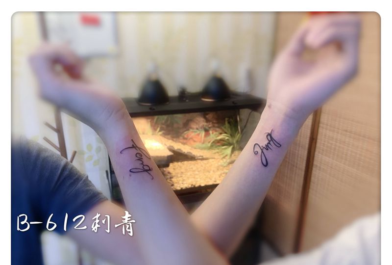 当前位置: 首页 >陕西省西安市纹身店-陆壹贰刺青纹身图案>情侣字母纹身图片_手臂纹身图案