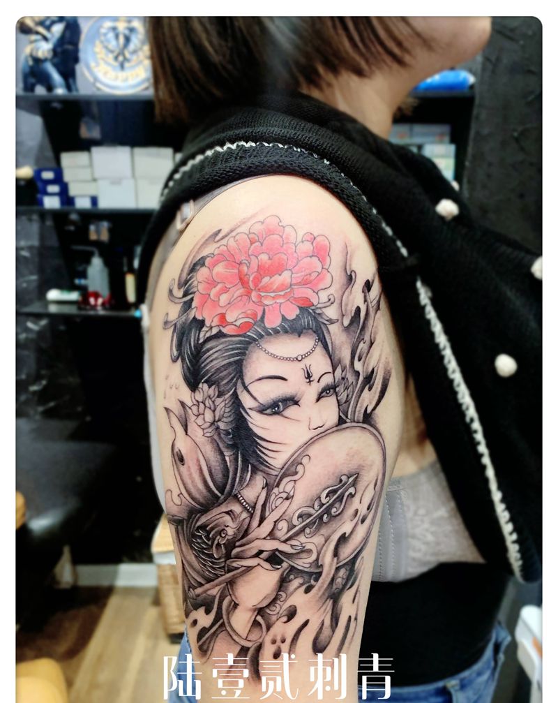 当前位置: 首页 >陕西省西安市纹身店-陆壹贰刺青纹身图案>艺妓纹身图片_新传统纹身图案