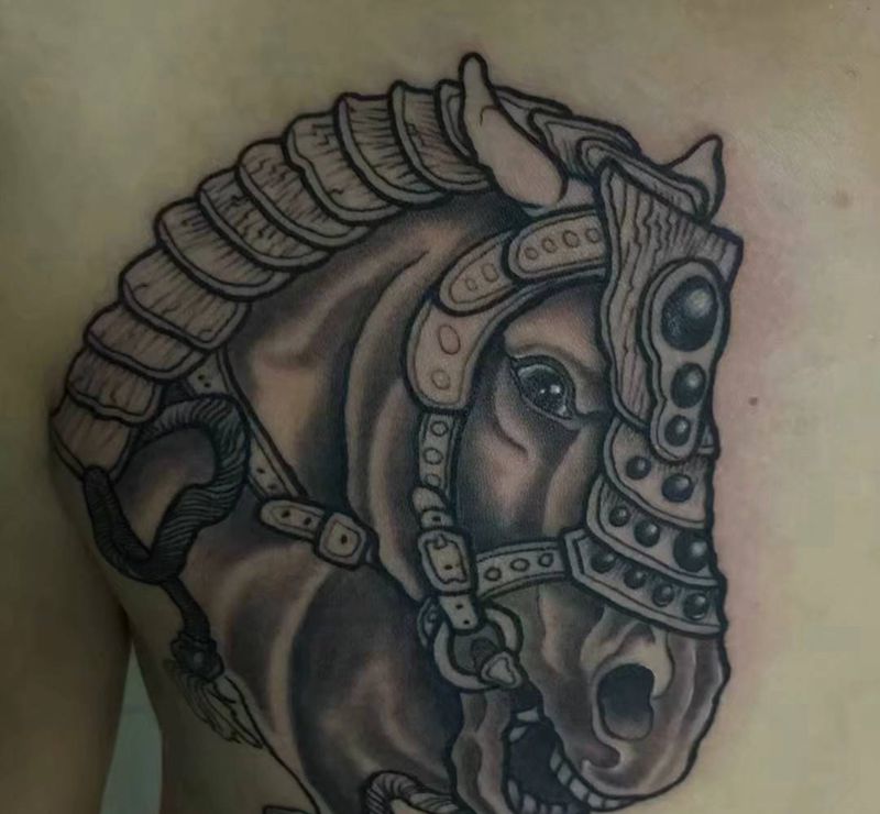 当前位置: 首页 >西藏拉萨市纹身店-永恒美刺青总部纹身图案>战马纹身图片_胸部点刺欧美写实马纹身图案