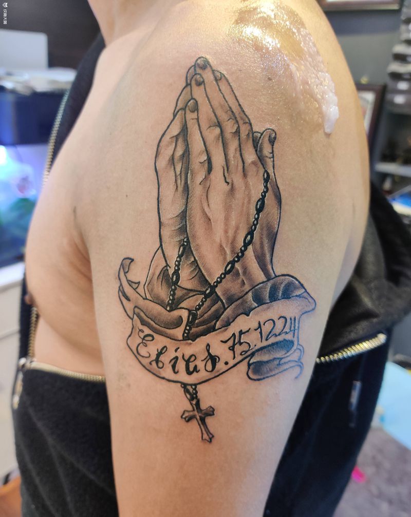当前位置: 首页 >西藏拉萨市纹身店-永恒美刺青总部纹身图案>祈祷之手纹身图片_手臂纹身图案