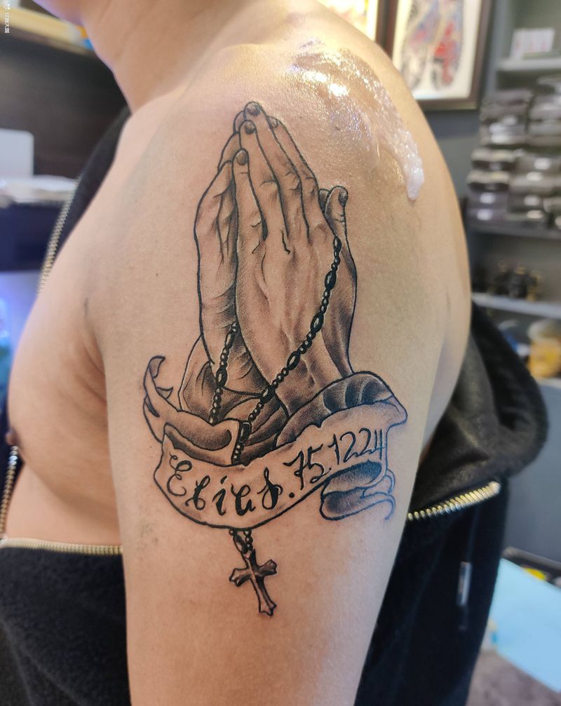 当前位置: 首页 >西藏拉萨市纹身店-永恒美刺青总部纹身图案>祈祷之手纹身图片_手臂纹身图案