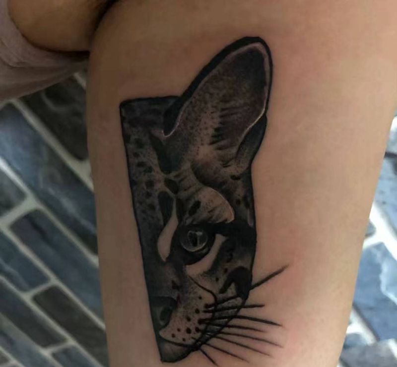 小猫咪纹身图片_手臂点刺欧美写实猫纹身图案